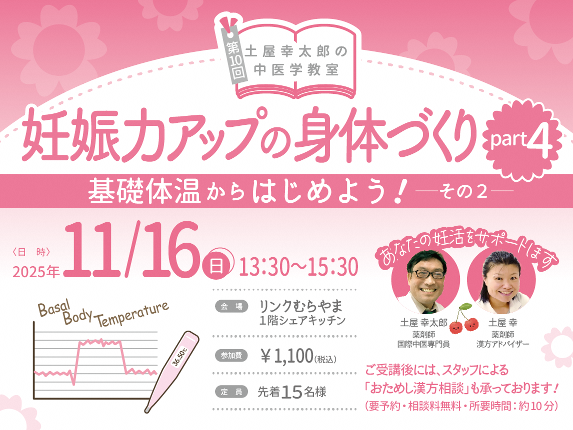 第10回『土屋幸太郎の中医学教室』妊娠力アップの身体づくり part4 基礎体温からはじめよう! ~その2~[11/1...